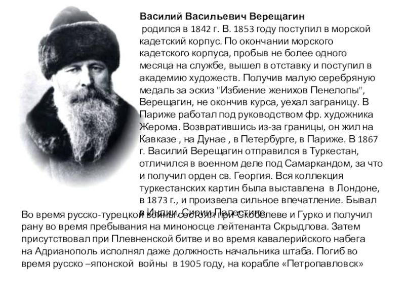 Во время русско-турецкой войны состоял при Скобелеве и Гурко и получил рану во время пребывания на миноносце лейтенанта Скрыдлова. Затем присутствовал при Плевненской битве и во время кавалерийского набега на Адрианополь исполнял даже должность начальника штаба. Погиб во время русско –японской войны в 1905 году, на корабле «Петропавловск»
