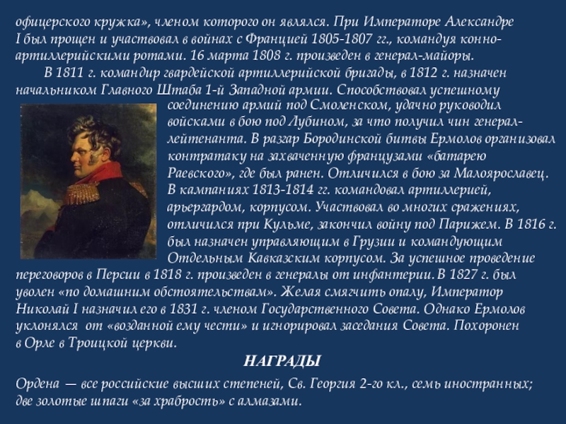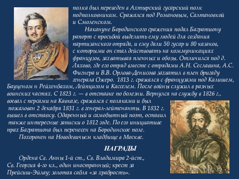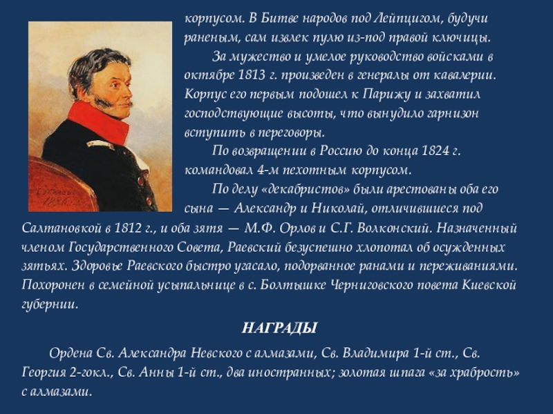 при Бар-сюр-Обе был тяжело ранен. В 1828 г. стал