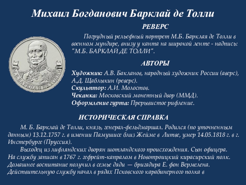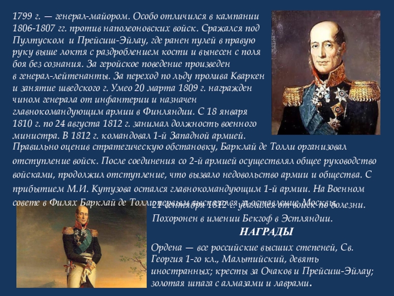 заменить его Барклаем де Толли. В 1814 г. в сражении