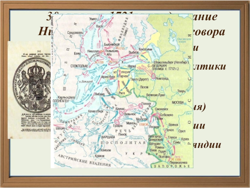 30 августа 1721г. – подписание Ништадтского мирного договора
