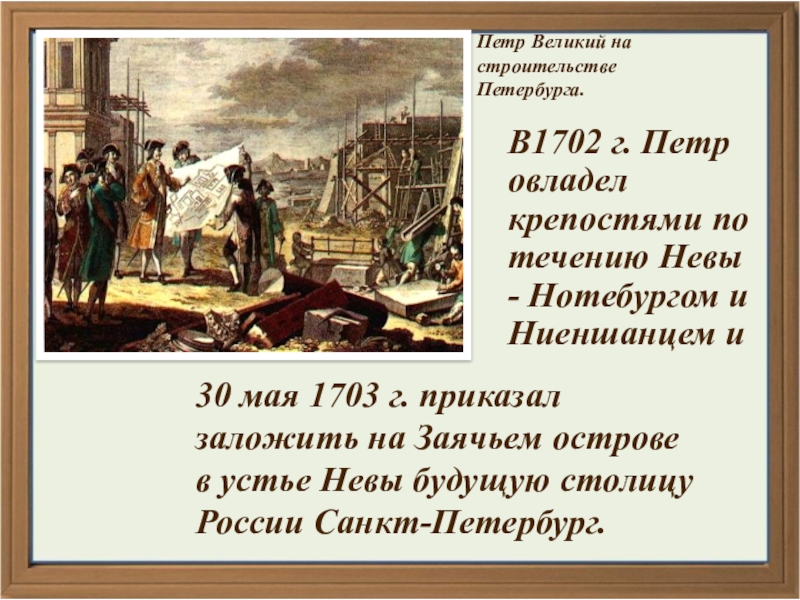 30 мая 1703 г. приказал заложить на Заячьем острове в устье Невы будущую столицу России Санкт-Петербург.