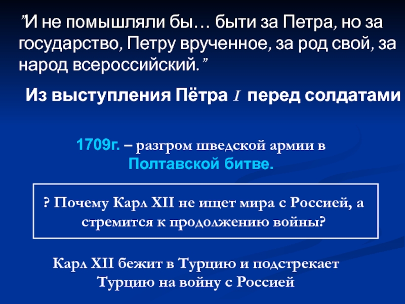 ? Почему Карл XII не ищет мира с Россией, а стремится к продолжению войны?