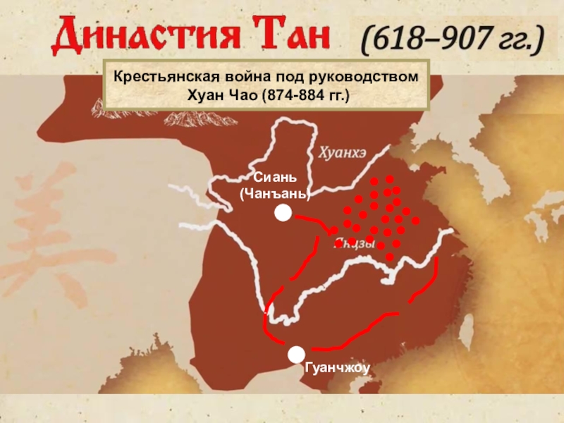 Слайд 6Крестьянская война под руководством Хуан Чао (874-884 гг.)