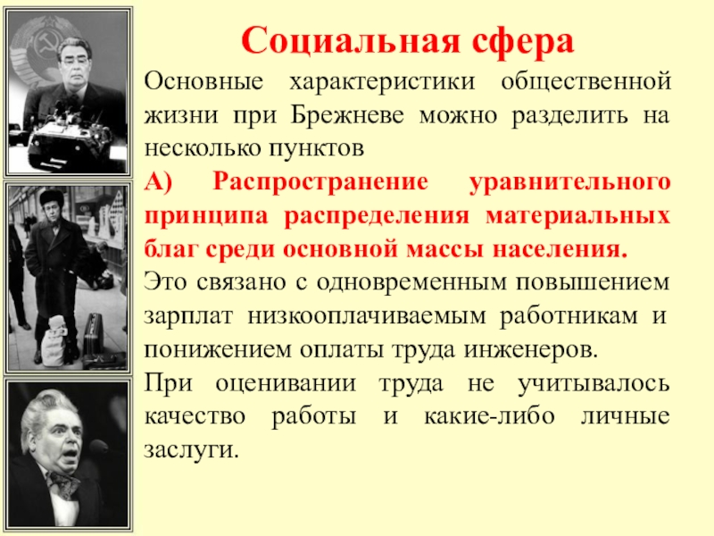 Основные характеристики общественной жизни при Брежневе можно разделить на несколько