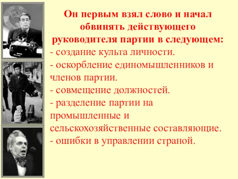 Слайд 11Он первым взял слово и начал обвинять действующего руководителя партии в