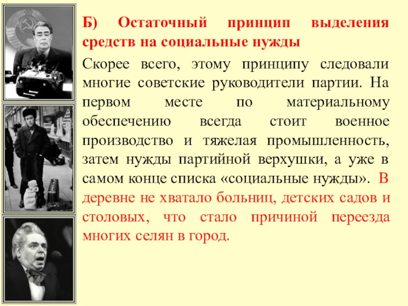 Слайд 28Б) Остаточный принцип выделения средств на социальные нужды
