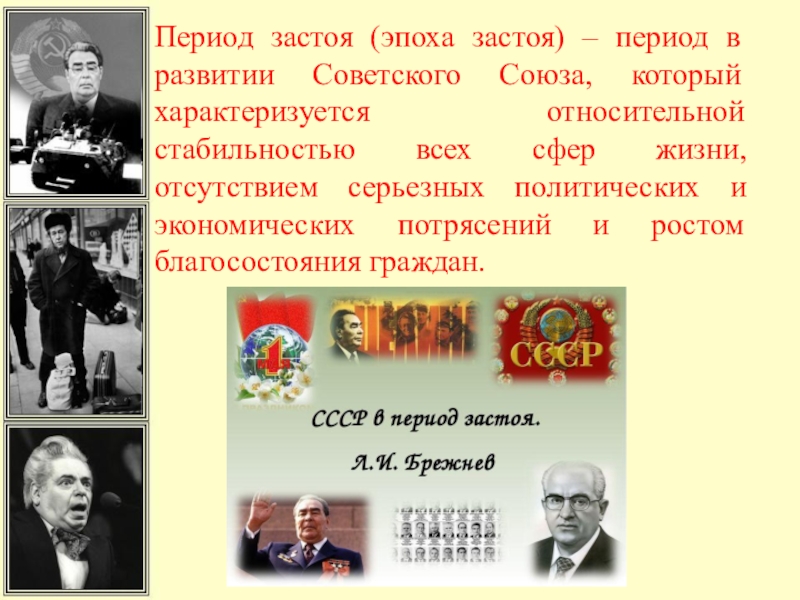 Слайд 2Период застоя (эпоха застоя) – период в развитии Советского Союза, который