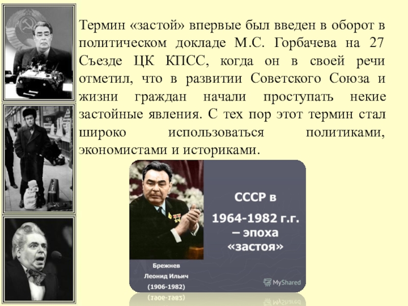 Слайд 4Термин «застой» впервые был введен в оборот в политическом докладе М.С.