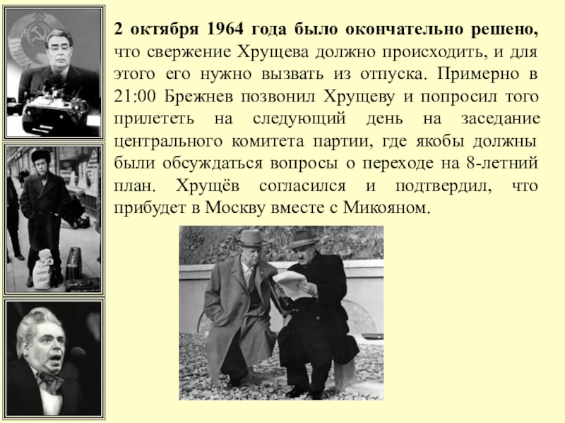Слайд 92 октября 1964 года было окончательно решено, что свержение Хрущева должно