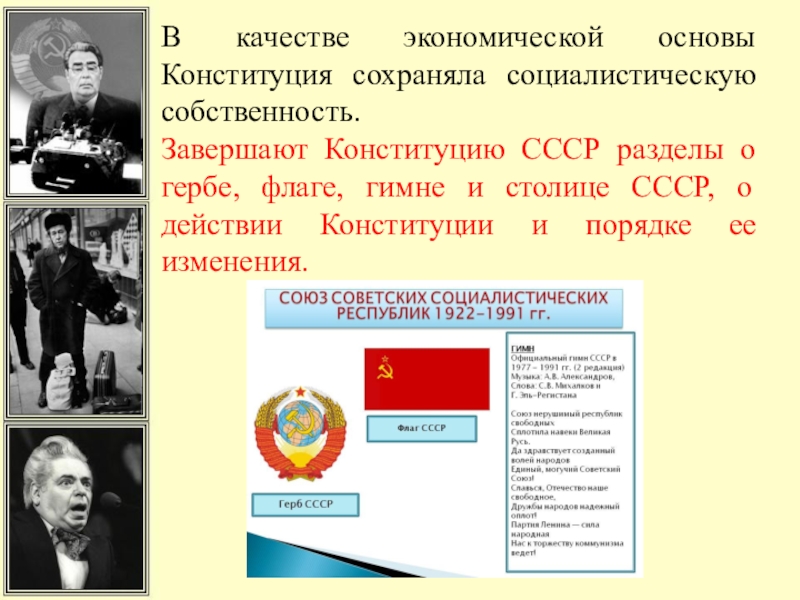 Слайд 20В качестве экономической основы Конституция сохраняла социалистическую собственность.