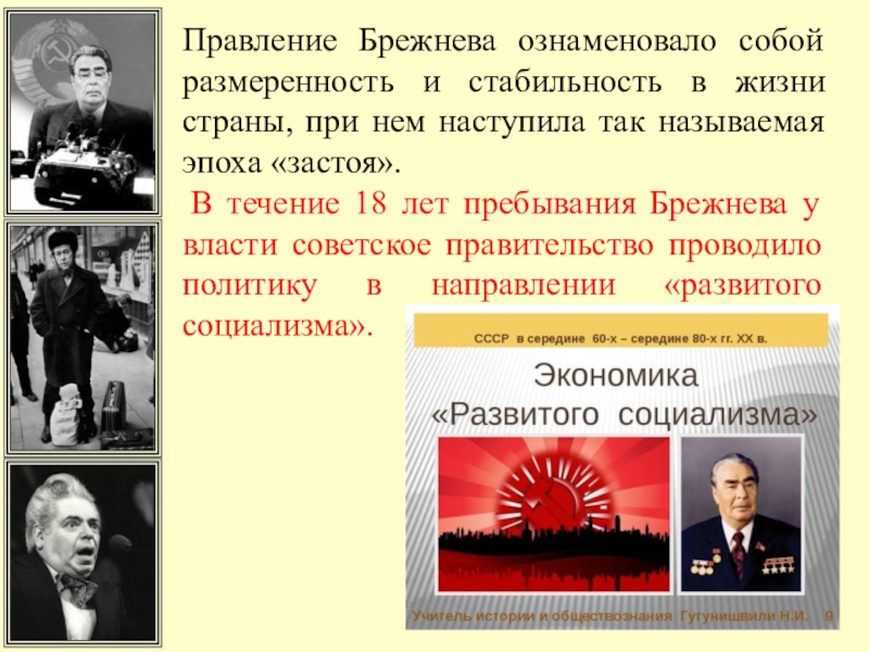 Слайд 33Правление Брежнева ознаменовало собой размеренность и стабильность в жизни страны, при