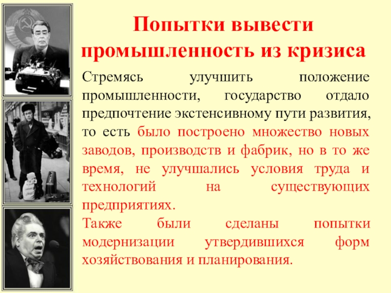 Также были сделаны попытки модернизации утвердившихся форм хозяйствования и планирования.