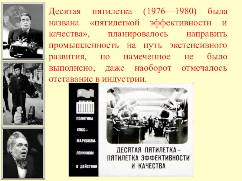 Слайд 23Десятая пятилетка (1976—1980) была названа «пятилеткой эффективности и качества», планировалось направить