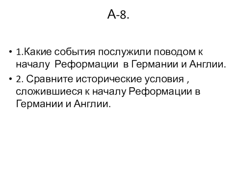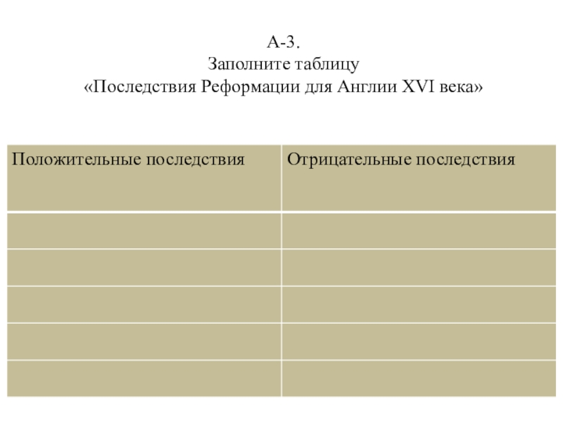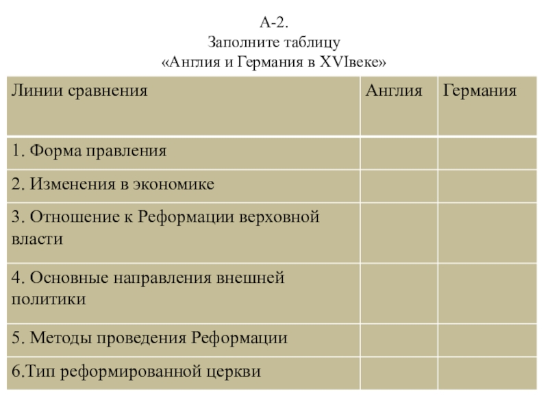 Содействовать формированию объективного и критического анализа к событиям реформации в Англии.