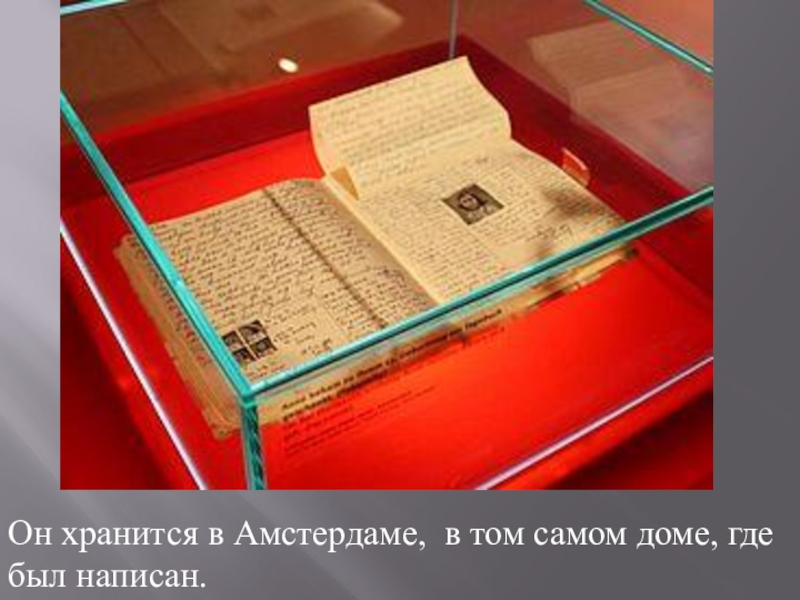 Слайд 9Он хранится в Амстердаме, в том самом доме, где был написан.