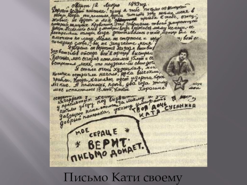 Слайд 18Письмо Кати на мемориале «Детская Хатынь»