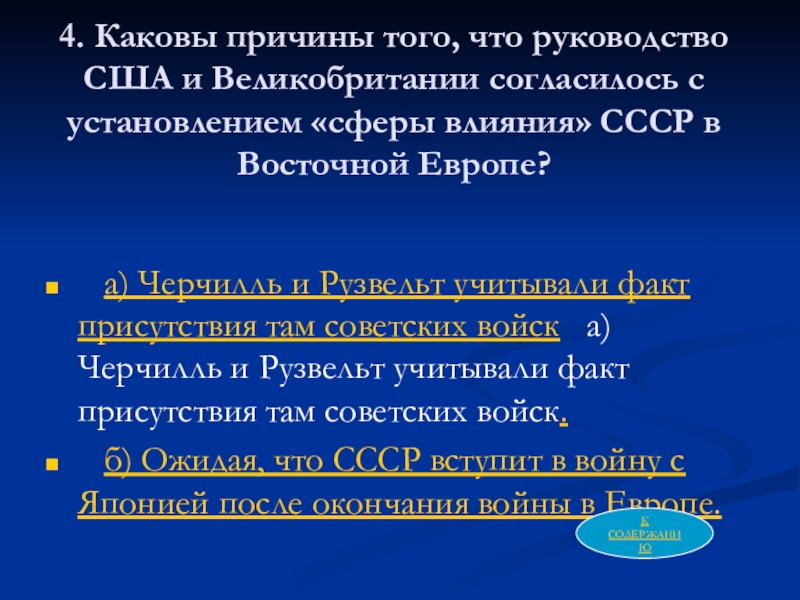 а) Черчилль и Рузвельт учитывали факт присутствия там советских войск а) Черчилль и Рузвельт учитывали факт присутствия там советских войск.