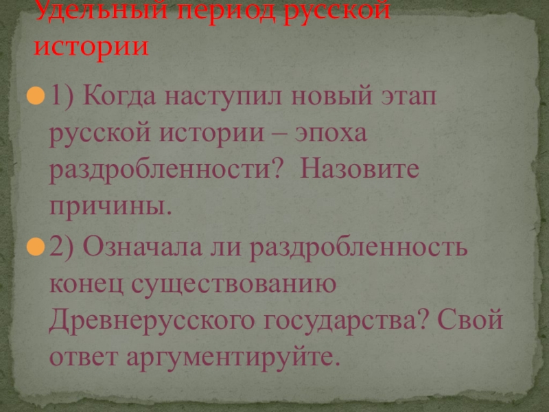 2) Означала ли раздробленность конец существованию Древнерусского государства? Свой ответ аргументируйте.