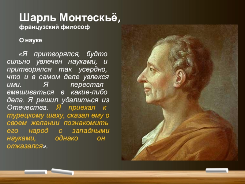 и притворялся так усердно, что и в самом деле увлекся ими. Я перестал вмешиваться в какие-либо дела. Я решил удалиться из Отечества. Я приехал к турецкому шаху, сказал ему о своем желании познакомить его народ с западными науками, однако он отказался».
