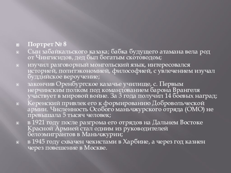 Сын забайкальского казака; бабка будущего атамана вела род от