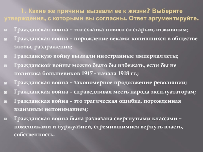 1. Какие же причины вызвали ее к жизни? Выберите утверждения, с