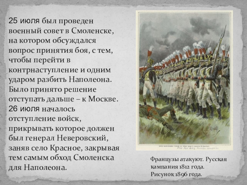 Французы атакуют. Русская кампания 1812 года. Рисунок 1896 года.