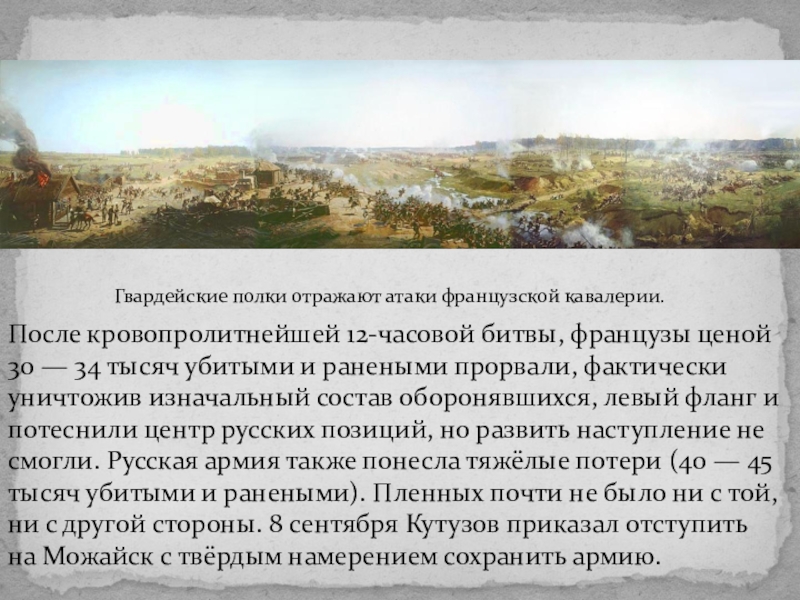 Гвардейские полки отражают атаки французской кавалерии.