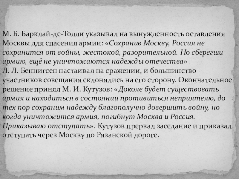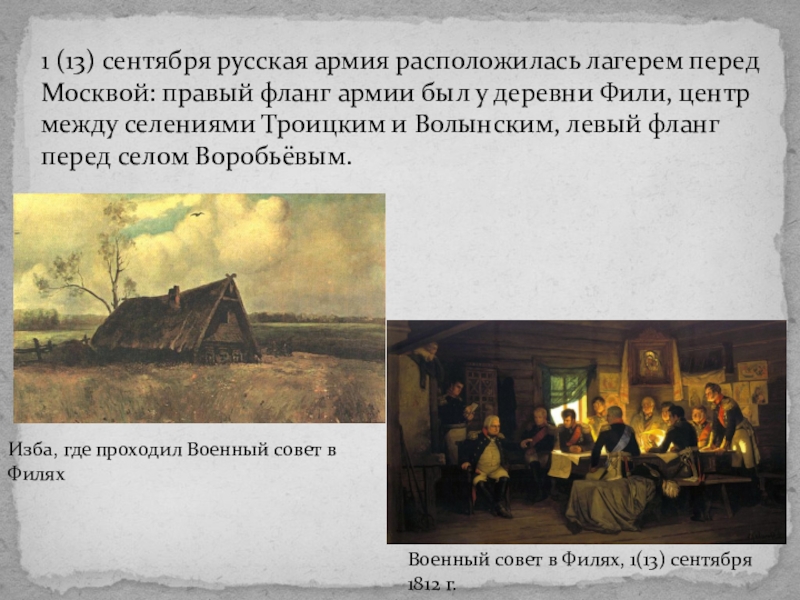 Военный совет в Филях, 1(13) сентября 1812 г.