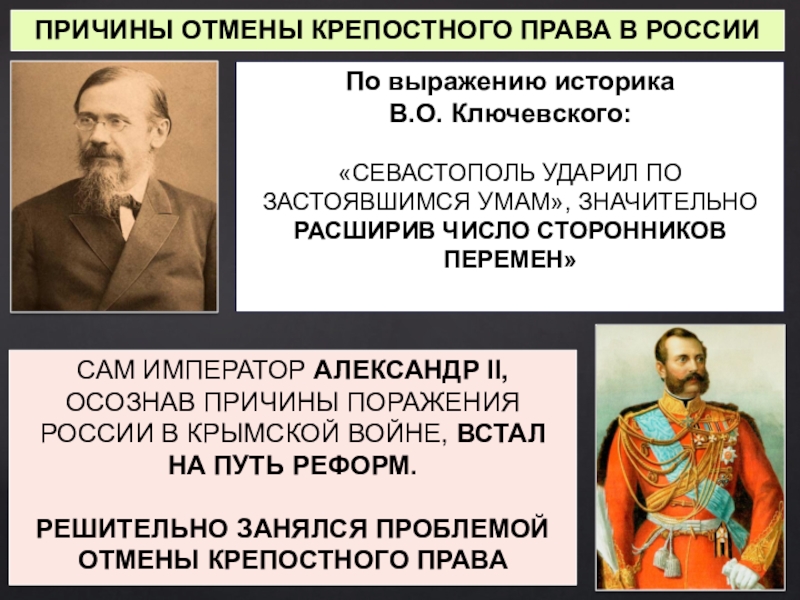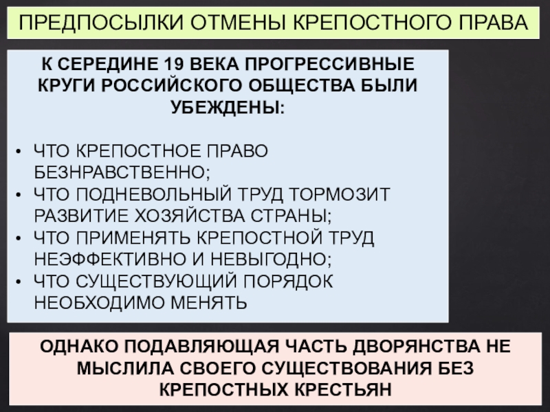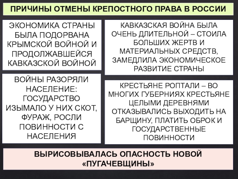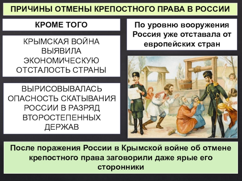 ПРИЧИНЫ ОТМЕНЫ КРЕПОСТНОГО ПРАВА В РОССИИ