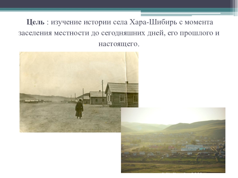 Цель : изучение истории села Хара-Шибирь с момента заселения местности до сегодняшних дней, его прошлого и