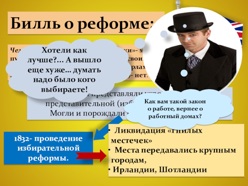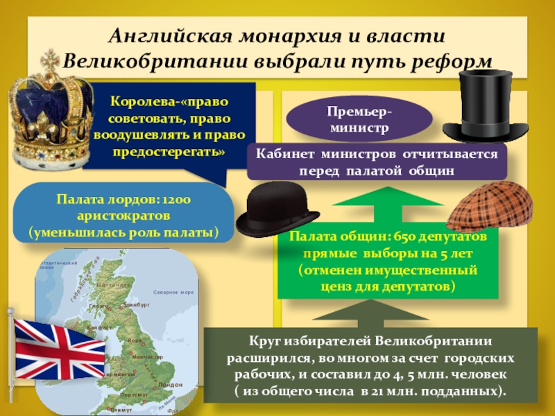 Круг избирателей Великобритании расширился, во многом за счет городских рабочих, и составил до 4, 5 млн. человек