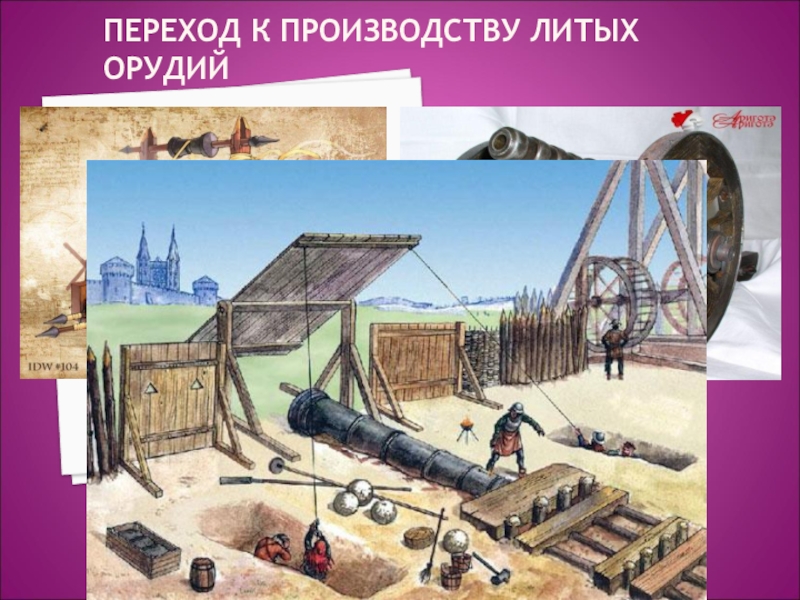 Слайд 6ПЕРЕХОД К ПРОИЗВОДСТВУ ЛИТЫХ ОРУДИЙ