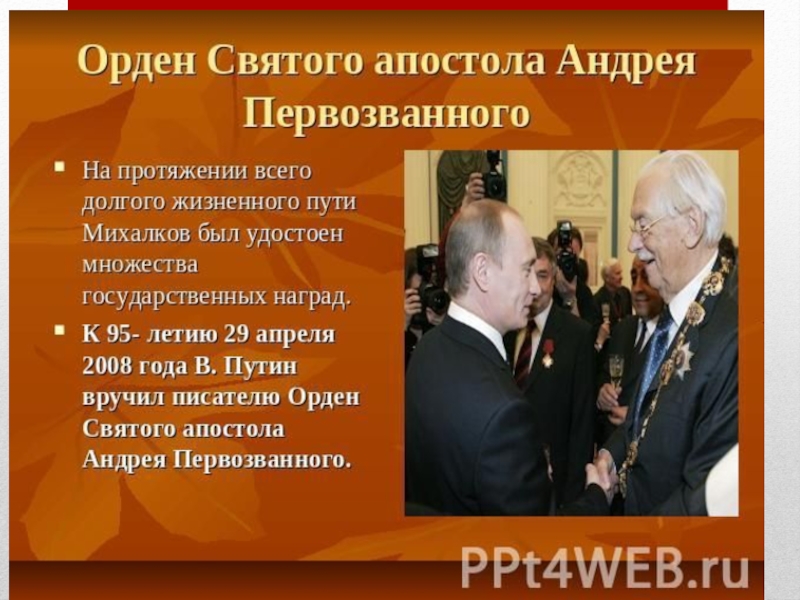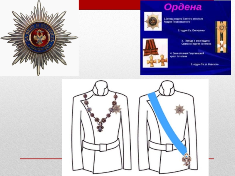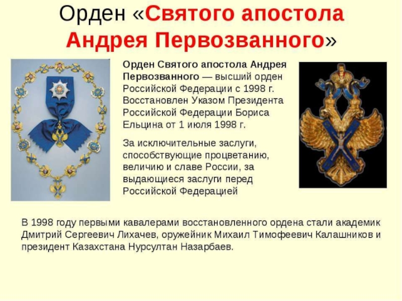 — орден Святого апостола Андрея Первозванного — для награждения за воинские подвиги и государственную службу.