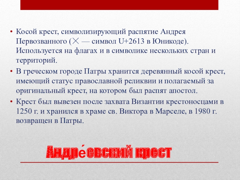 Косой крест, символизирующий распятие Андрея Первозванного (☓ — символ