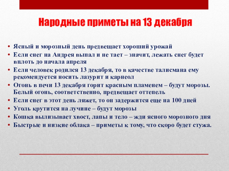 Слайд 21День памяти святого апостола Андрея Первозванного 13 декабря популярен и как