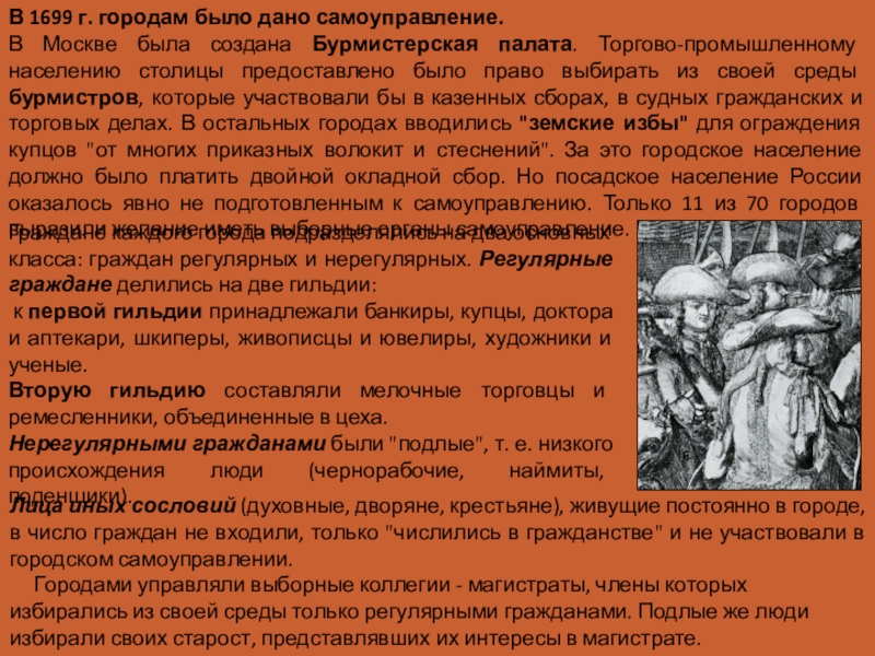 В 1699 г. городам было дано самоуправление.
