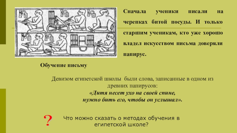 Давайте представим себе, как проходили занятия в древнеегипетской школе.