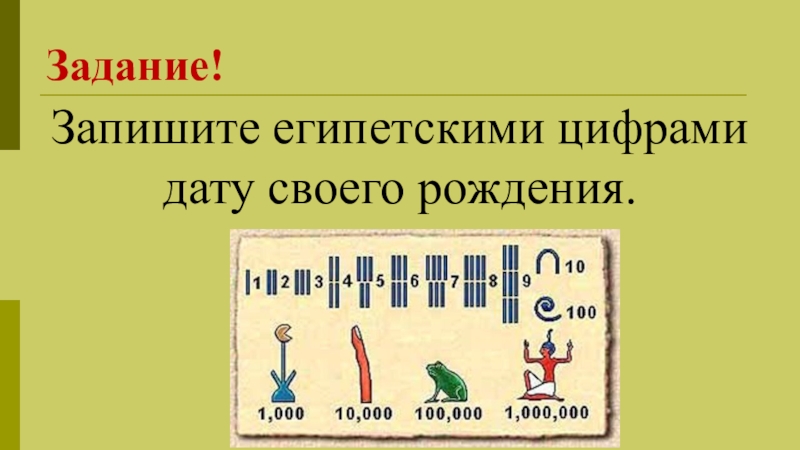 Запишите египетскими цифрами дату своего рождения.