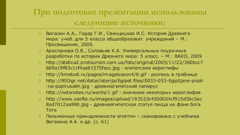 История Древнего мира: учеб. для 5 класса общеобразоват. учреждений – М.: Просвещение, 2006.