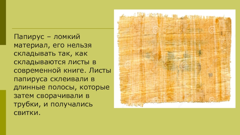 Слайд 17Папирус – ломкий материал, его нельзя складывать так, как складываются листы