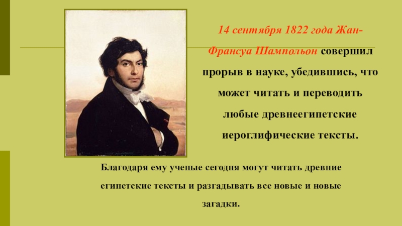 14 сентября 1822 года Жан-Франсуа Шампольон совершил прорыв в науке, убедившись,