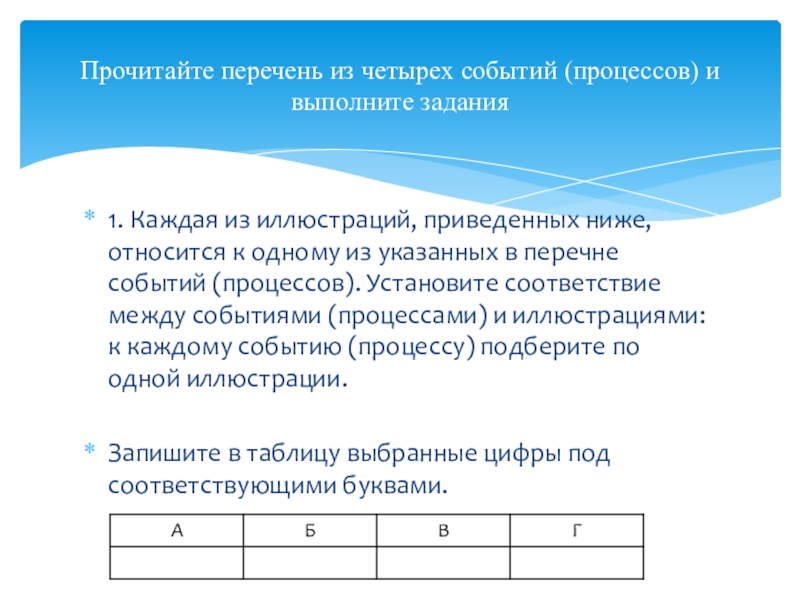 Прочитайте перечень из четырех событий (процессов) и выполните задания