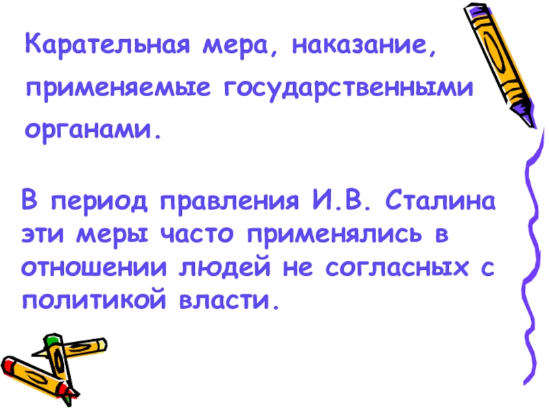 Карательная мера, наказание, применяемые государственными органами.В период правления И.В. Сталина эти меры часто применялись в отношении людей