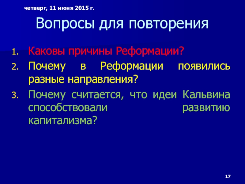 Тем самым идеи Кальвина способствовали развитию капитализма.