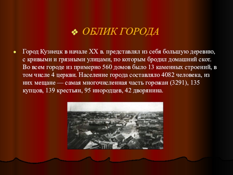 Город Кузнецк в начале XX в. представлял из себя большую деревню,