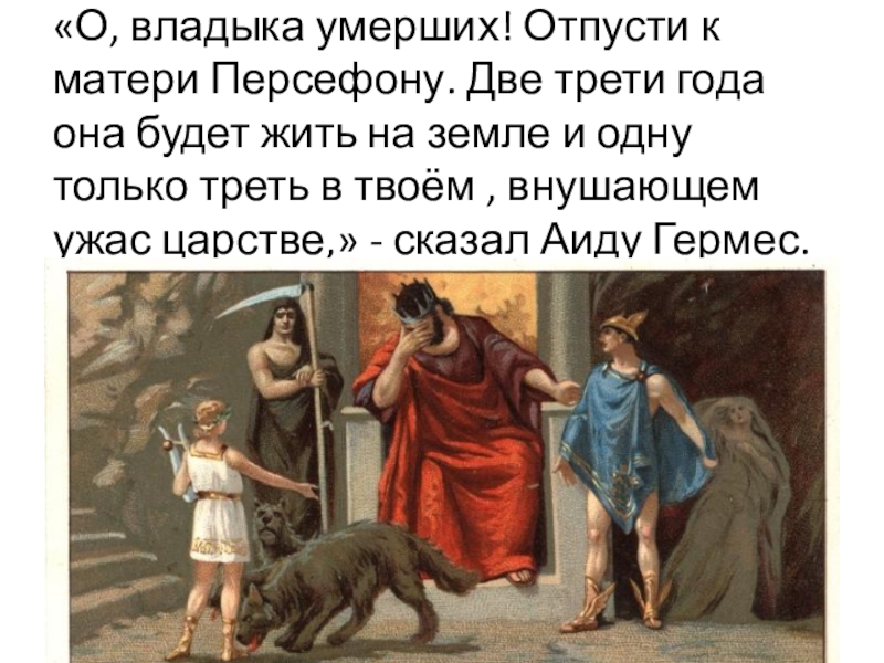 Слайд 10«О, владыка умерших! Отпусти к матери Персефону. Две трети года она