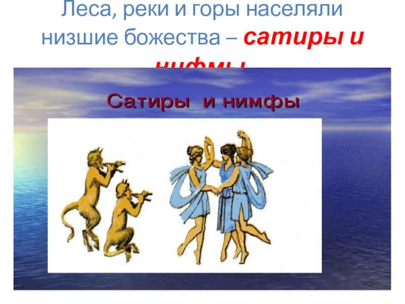 Слайд 13Леса, реки и горы населяли низшие божества – сатиры и нифмы.