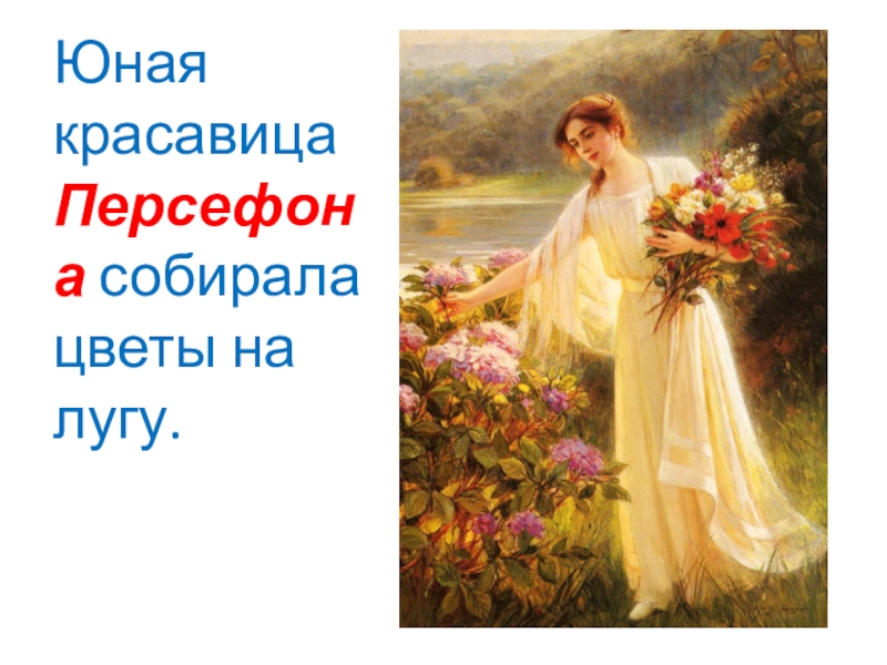 Слайд 16Юная красавица Персефона собирала цветы на лугу.