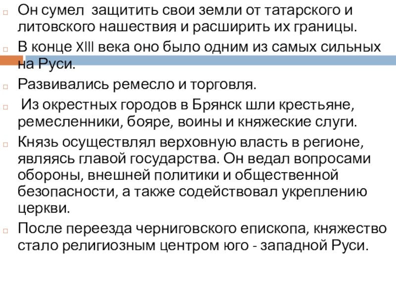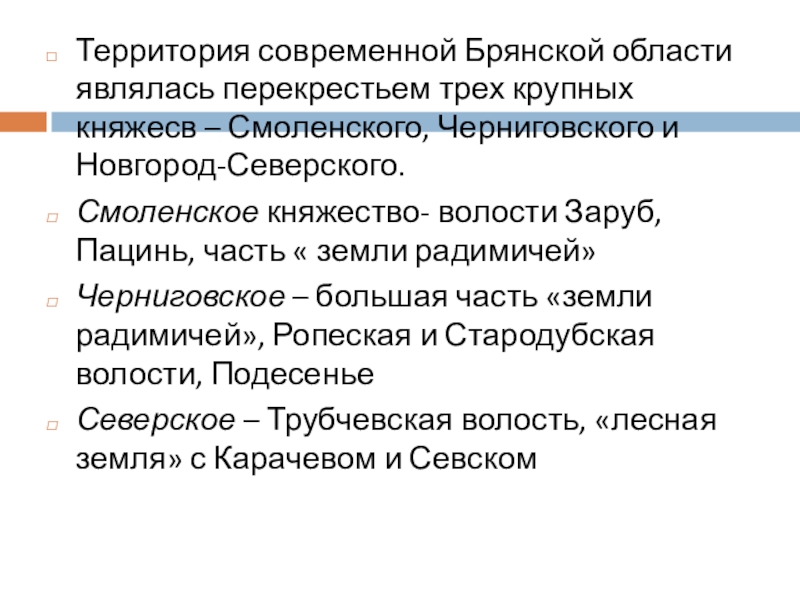 Территория современной Брянской области являлась перекрестьем трех крупных княжесв – Смоленского,