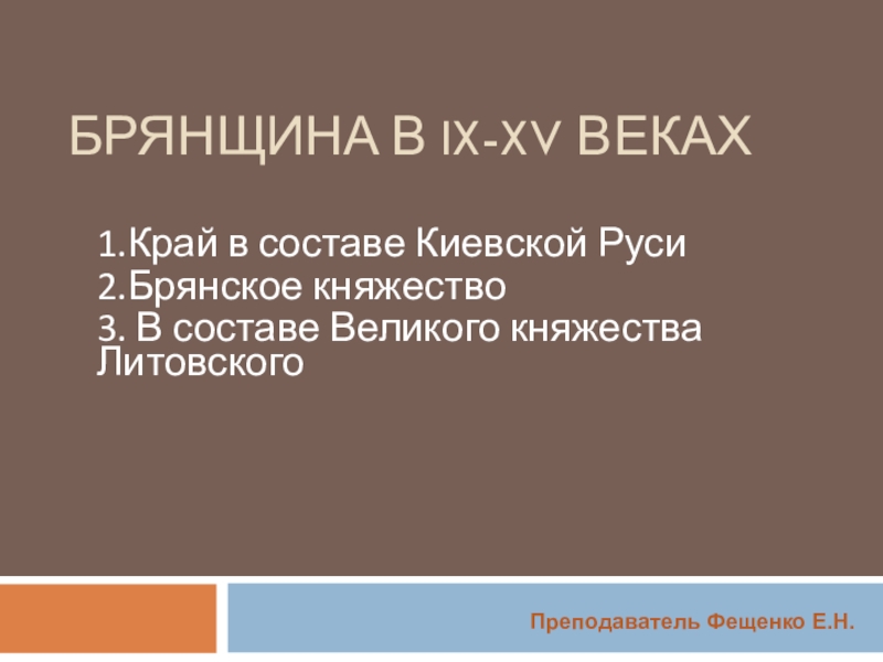 Слайд 1БРЯНЩИНА В IX-XV ВЕКАХ